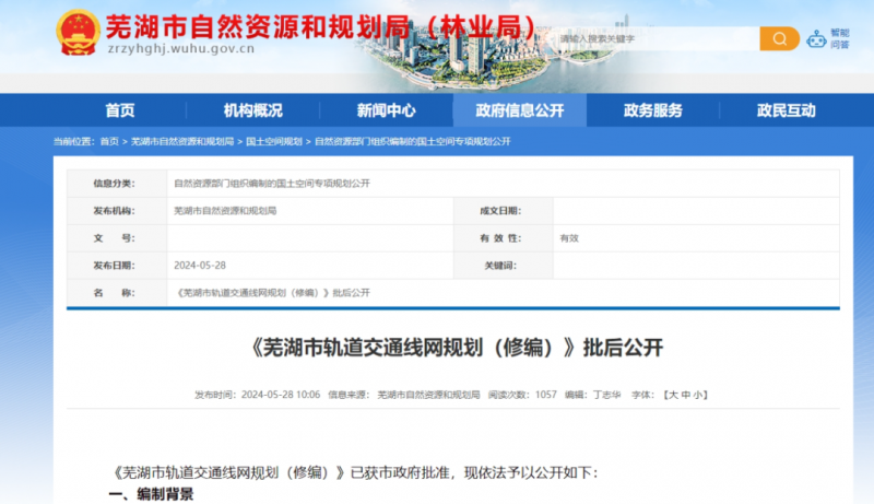 5月28日,蕪湖市自然資源和規(guī)劃局網(wǎng)站公開了《蕪湖市軌道交通線網(wǎng)規(guī)劃(修編)》(以下簡稱《規(guī)劃》)。此次規(guī)劃年限與國土空間總體規(guī)劃的規(guī)劃年限一致,為2035年,遠景展望至2050年。