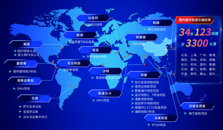 在國際市場,華啟智能業(yè)務(wù)累計(jì)拓展至境外15個(gè)國家和地區(qū)26條線路,接連中標(biāo)了印度加爾各答、孟買、浦那、蘇拉特等6個(gè)城市9條線路,以及墨西哥地鐵、拉各斯地鐵、沙特麥加輕軌改造等共計(jì)1555輛車的車載PIS項(xiàng)目。另外,華啟智能還是CAF、Alstom等國際主流車廠的合格供應(yīng)商。