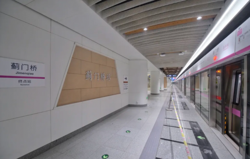 昌平線南延一期北起西二旗站、南至薊門橋站,全線長(zhǎng)12.6公里,換乘車站5座,其中西二旗——西土城段已開通,高峰期間有44列地鐵車輛線上運(yùn)行。