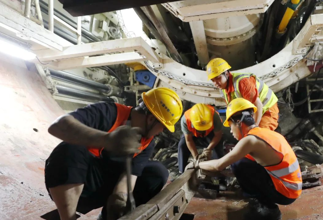 同時,項(xiàng)目部對盾構(gòu)機(jī)施工團(tuán)隊(duì)技術(shù)人員、作業(yè)人員進(jìn)行了技術(shù)和安全交底,并細(xì)化了責(zé)任分工。在深約20米深的盾構(gòu)機(jī)始發(fā)現(xiàn)場,施工單位中鐵一局項(xiàng)目總工姚俊東手持卡尺,一連測量了油缸行程及盾尾間隙4個點(diǎn)位。他稱,盾構(gòu)機(jī)起步要“穩(wěn)”,嚴(yán)格控制盾構(gòu)機(jī)姿態(tài),從而確保隧道成型管片緊密,無錯臺,滿足隧道線性;維持開挖土量與排土量的平衡,以保證土體穩(wěn)定。