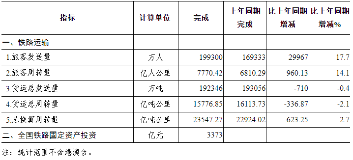 2024年1-6月國(guó)家鐵路主要指標(biāo)完成情況
