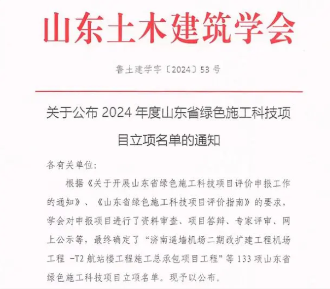 近日,山東土木建筑學(xué)會(huì)下發(fā)《關(guān)于公布2024年度山東省綠色施工科技項(xiàng)目立項(xiàng)名單的通知》,濟(jì)南軌道交通集團(tuán)下屬濟(jì)南黃河路橋建設(shè)集團(tuán)有限公司承建的濟(jì)南軌道交通產(chǎn)業(yè)園(一期)和站前商務(wù)區(qū)西南居住項(xiàng)目2項(xiàng)房建工程經(jīng)過(guò)資料申報(bào)、項(xiàng)目答辯、專家評(píng)審、網(wǎng)上公示等階段,成功立項(xiàng)為山東省綠色施工科技項(xiàng)目。