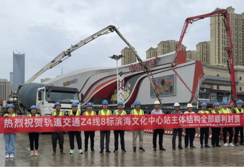 近日,隨著最后一塊頂板混凝土澆筑完成,軌道交通Z4線濱海文化中心站主體結構順利封頂,項目建設取得階段性成果。