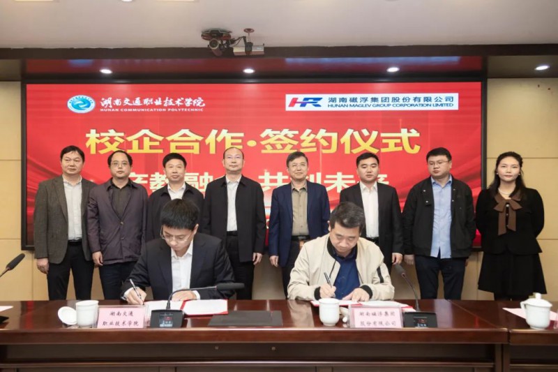 10月21日上午,湖南磁浮集團股份有限公司(簡稱磁浮股份)與湖南交通職業(yè)技術學院(簡稱交通職院)舉行校企合作簽約授牌儀式,深入推進校企合作、產(chǎn)教融合,共建校企合作基地。交通職院黨委副書記、院長陽勇,湖南軌道集團董事會秘書閔濤,磁浮股份和交通職院相關負責人共同出席儀式。