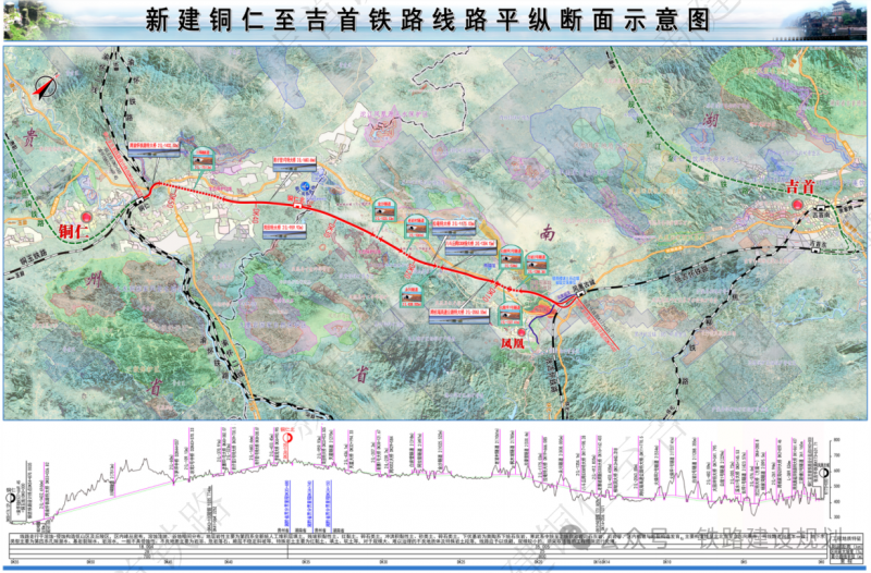 線路全長52.102公里,其中貴州段18.944公里、湖南段33.158公里,共設(shè)銅仁、銅仁北、鳳凰古城3座車站。