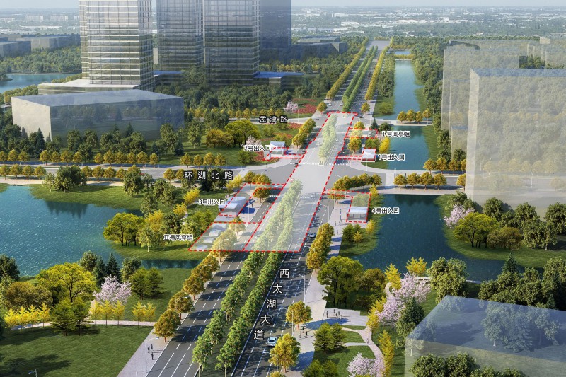 攬月灣站是5號線從西南到東北的起始站,車站主體布置在西太湖大道與環(huán)湖北路交叉口處,沿西太湖大道南北向一字型敷設,下穿環(huán)湖北路、孟津路。車站設計為地下二層島式站臺車站,總長度347.1m,總建筑面積16869.28㎡,設置2個風亭及4個出入口。