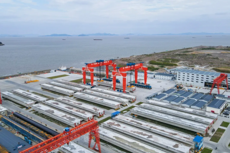 市域鐵路象山線跨海大橋全長8.26公里,跨海段橋梁長6.24公里,是國內(nèi)首座市域(郊)鐵路跨海大橋。本次引橋段海上架設(shè)預(yù)制箱梁共66榀,每榀梁長60米,寬10.6米,重約1700噸,是國內(nèi)市域(郊)鐵路工程跨度最大、噸位最重、方量最大的預(yù)應(yīng)力混凝土預(yù)制箱梁。