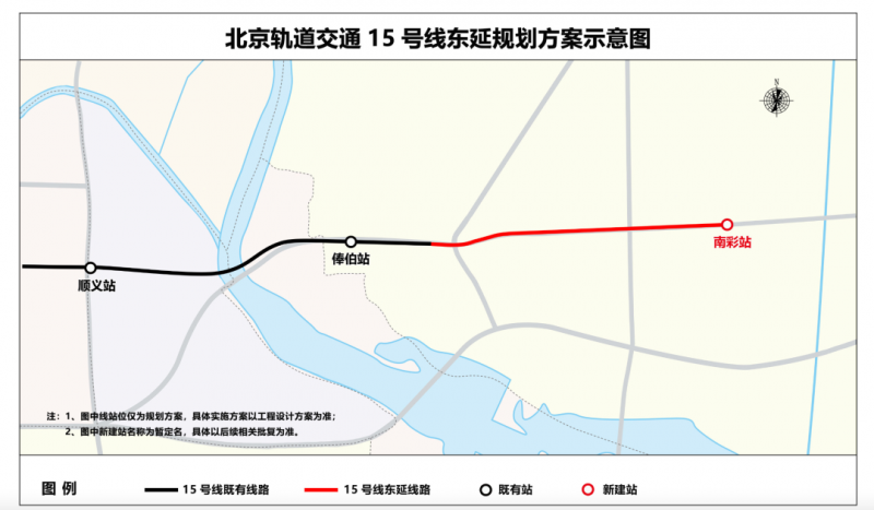 近日,北京市基礎(chǔ)設(shè)施投資有限公司網(wǎng)站對(duì)《北京軌道交通15號(hào)線東延線路一體化規(guī)劃方案》進(jìn)行公示。根據(jù)方案,15號(hào)線將從俸伯站向東延長(zhǎng)至順義區(qū)南彩站,規(guī)劃南彩站也是一座新建站。