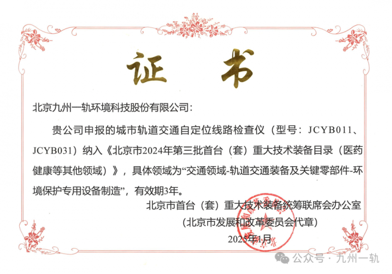 首臺(套)重大技術裝備是指國內實現(xiàn)重大技術突破、擁有知識產權、尚未取得明顯市場業(yè)績的裝備產品。獲得此認證,標志著九州一軌車載軌道聲紋監(jiān)測技術取得了產品開發(fā)的成功、實現(xiàn)了行業(yè)技術領先。