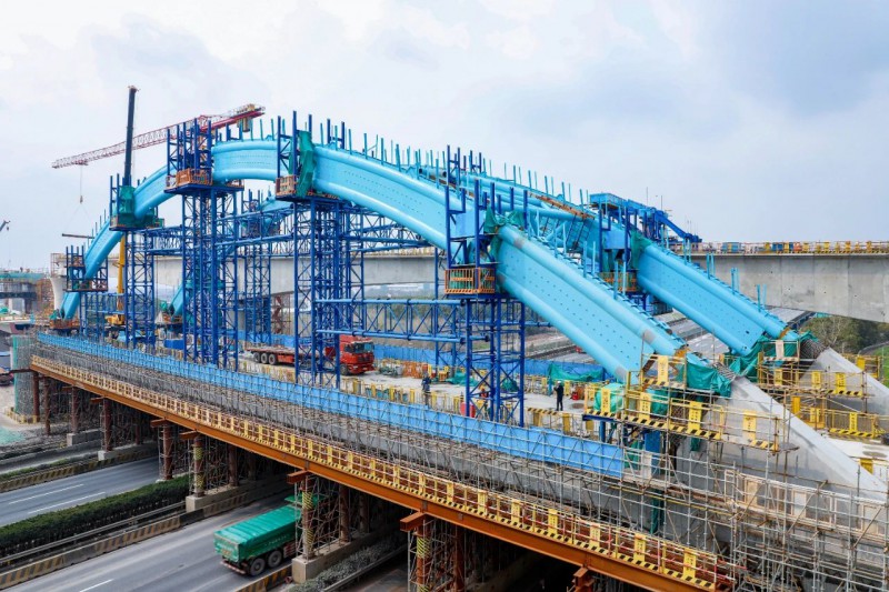 近日,滬蘇通鐵路二期(即滬蘇通鐵路太倉至四團(tuán)段)控制性工程--惠南特大橋跨S32申嘉湖高速公路96米拱肋結(jié)構(gòu)順利合龍,項(xiàng)目建設(shè)取得階段性進(jìn)展。