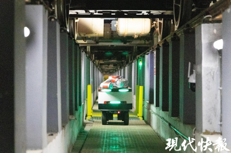 近日,在常州地鐵1號(hào)線百丈車輛段內(nèi),2臺(tái)常州地鐵智能巡檢機(jī)器人“鐵寶2.0”投入試運(yùn)行,每晚共完成4列地鐵列車的巡檢作業(yè)。