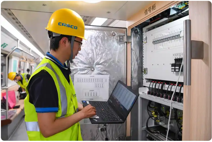 二期工程列車(chē)上線調(diào)試后,調(diào)試人員將通過(guò)設(shè)置在長(zhǎng)江西路站的臨時(shí)控制中心對(duì)列車(chē)進(jìn)行控制,既保證動(dòng)車(chē)調(diào)試的效率,又避免對(duì)既有線路運(yùn)營(yíng)產(chǎn)生影響;后續(xù)還將逐一進(jìn)行新增列車(chē)在新線段范圍內(nèi)的型式試驗(yàn)、軌旁信號(hào)數(shù)據(jù)校核測(cè)試、無(wú)線場(chǎng)強(qiáng)覆蓋測(cè)試、低/高速動(dòng)態(tài)驗(yàn)證、外部接口測(cè)試、UTO功能調(diào)試、系統(tǒng)能力驗(yàn)證等一系列測(cè)試。
