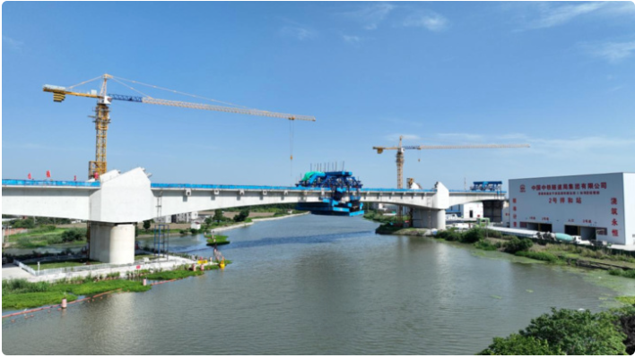 通蘇嘉甬高鐵蘇南特大橋跨牛長涇連續(xù)梁主跨合龍