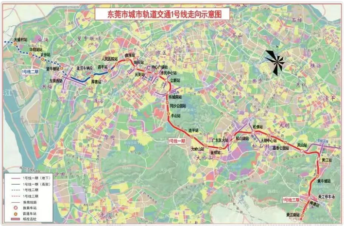東莞軌道交通1號線是東莞城市軌道交通線網(wǎng)市域骨干線路之一,項目計劃分三期建設。其中,1號線一期起于東莞西站(原工程名望洪站),終于梅塘站(原工程名黃江中心站),長57.99公里,途經(jīng)望牛墩、洪梅、道滘、萬江、南城、東城、大嶺山、松山湖、大朗和黃江10個鎮(zhèn)街(園區(qū)),實現(xiàn)中心城區(qū)與水鄉(xiāng)片區(qū)、松山湖片區(qū)的快速聯(lián)系。一期工程共設車站25座、車輛段和停車場各1座,具有線路長、速度快、內聚外聯(lián)等特點,設計最高時速120公里,項目爭取2025年底開通運營。