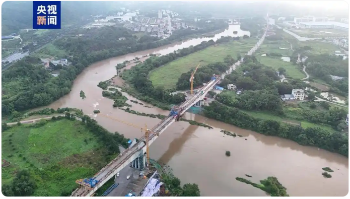大橋全長2820米,先后跨越濟廣高速、濟廣高速會昌收費站、湘水河、G206國道。項目施工工序復(fù)雜,高空作業(yè)內(nèi)容多,梁面作業(yè)空間狹小,安全風(fēng)險高。建設(shè)人員創(chuàng)新技術(shù)工藝,在質(zhì)量可靠、安全可控的前提下提升施工效率,合龍進度比預(yù)期大幅提前。