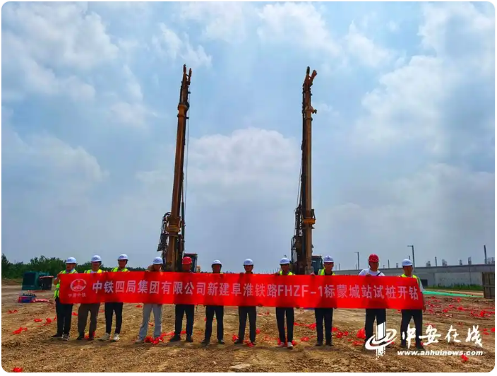 7月10日上午,由中鐵四局承建的新建阜陽至蒙城至宿州(淮北)鐵路蒙城站站房項(xiàng)目首根試樁順利開鉆,標(biāo)志著該項(xiàng)目正式開工建設(shè)。