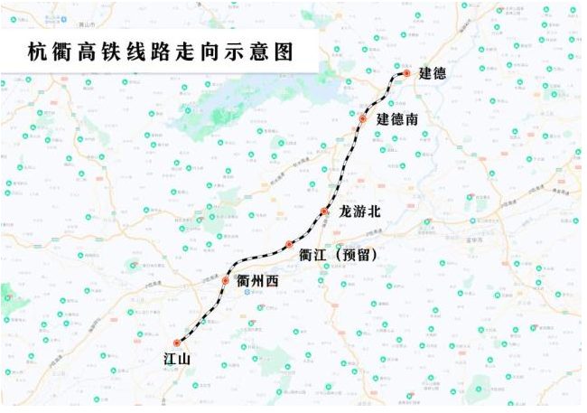 杭衢高鐵位于浙江省建德市和衢州市境內(nèi),線路起自杭昌高鐵黃昌段楊村橋線路所,途經(jīng)杭州市所轄建德市,衢州市所轄龍游縣、衢江區(qū)、柯城區(qū)、江山市,終至江山站杭衢場,正線全長約131公里,設(shè)計時速350公里,共設(shè)建德(既有)、建德南、龍游北、衢江(預(yù)留)、衢州西、江山(改擴(kuò)建)6個車站。正線共有橋梁116座、隧道33座,橋隧比高達(dá)78.7%。