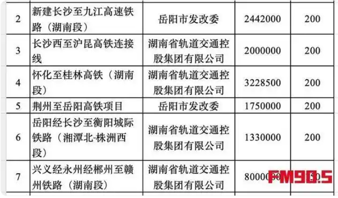 近日,湖南省發(fā)改委正式發(fā)布《關(guān)于2025年重大投資項(xiàng)目前期工作經(jīng)費(fèi)擬支持項(xiàng)目的公示》,其中涉及6個(gè)重大鐵路項(xiàng)目:新建長(zhǎng)沙至九江高速鐵路(湖南段)、長(zhǎng)沙西至滬昆高鐵連接線、懷化至桂林高鐵(湖南段)、荊州至岳陽(yáng)高鐵項(xiàng)目、岳陽(yáng)經(jīng)長(zhǎng)沙至衡陽(yáng)城際鐵路(湘潭北-株洲西段)、興義經(jīng)永州經(jīng)郴州至贛州鐵路(湖南段),共計(jì)擬支持1150萬(wàn)元。