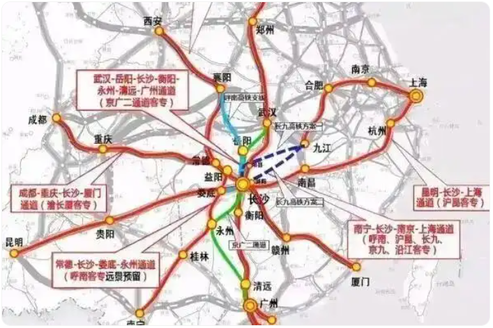 在這些線路中,有4個(gè)湖南出省高鐵大通道,比如長(zhǎng)沙至九江高速鐵路、懷化至桂林高鐵、荊州至岳陽(yáng)高鐵、興義經(jīng)永州經(jīng)郴州至贛州鐵路,也有助力長(zhǎng)株潭一體化的重要線路,如:長(zhǎng)沙西至滬昆高鐵連接線(即長(zhǎng)韶婁高鐵)、岳陽(yáng)經(jīng)長(zhǎng)沙至衡陽(yáng)城際鐵路(湘潭北-株洲西段)。