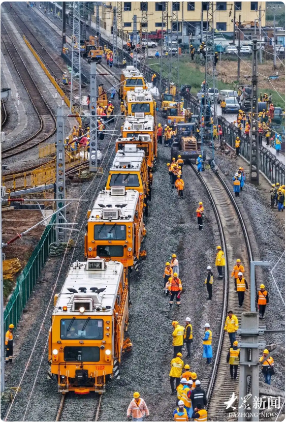 本次封鎖施工歷時(shí)270分鐘,多個(gè)專業(yè)工種協(xié)同奮戰(zhàn),在京滬鐵路白家店至兗州區(qū)間范圍內(nèi),進(jìn)行了3處關(guān)鍵點(diǎn)的撥接作業(yè),完成了3.1km新建鐵路線路的順利開通。施工作業(yè)還同步完成了相關(guān)股道及道岔、線路的拆除,配套信號(hào)、接觸網(wǎng)等設(shè)備設(shè)施的改造。