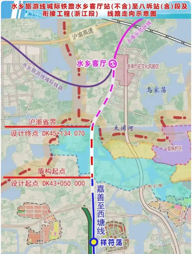 為確保滬蘇嘉城際鐵路西塘線、上海示范區(qū)線、水鄉(xiāng)旅游線三線實(shí)現(xiàn)貫通運(yùn)營,西塘線省界段已納入水鄉(xiāng)旅游線城際鐵路水鄉(xiāng)客廳站(不含)至八坼站(含)段及銜接工程。