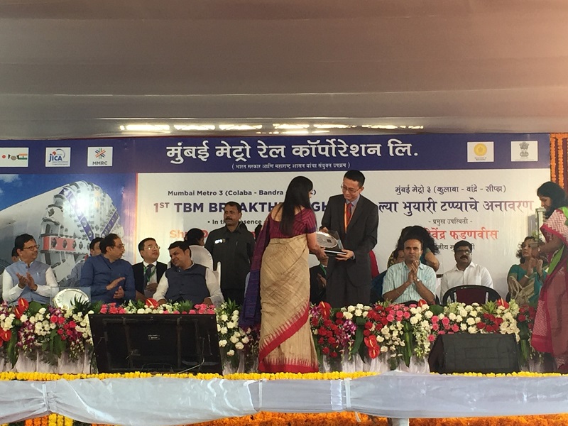 9月24日,唐國才總領(lǐng)事應(yīng)邀出席孟買地鐵三號線首條盾構(gòu)區(qū)間貫通儀式。印度馬哈拉施特拉邦首席部長法德納維斯、孟買地鐵公司董事總經(jīng)理艾詩薇妮女士、上海城建國際總經(jīng)理周雋等參加儀式。
