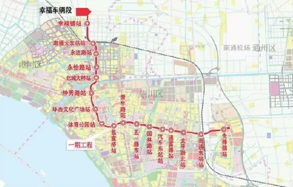 按可研報告,2號線一期工程串聯(lián)港閘區(qū)、崇川區(qū)和通州區(qū),依次連接幸福街道、南通火車站、市北新城、老城區(qū)、南通大學(xué)城、南通汽車東站、觀音新城、南通火車東站和先鋒鎮(zhèn)等重要節(jié)點,是一條貫穿城市南北和東西方向的骨干線路。線路長約21.04公里,全線共設(shè)17座車站,平均站間距1.27公里,均為地下線路。設(shè)幸福車輛段一座,與在建1號線共享控制中心。一期工程計劃2018年底開工建設(shè),2023年6月建成。