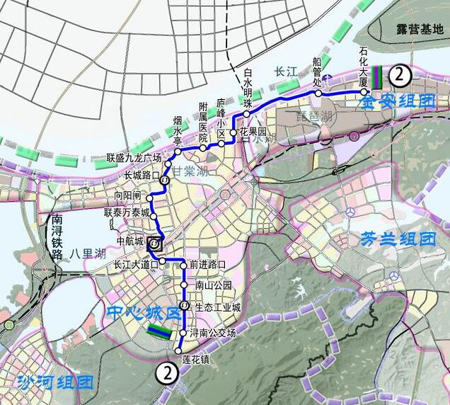 2號(hào)線: 起點(diǎn)為蓮花鎮(zhèn)站,經(jīng)十里大道、前進(jìn)西路、長(zhǎng)虹大道、長(zhǎng)江大道、九瑞大道、龍開河路、潯陽(yáng)路、廬峰東路、花果園北路、濱江東路至煉油廠。線路全長(zhǎng)約23.38公里,共設(shè)站18座。