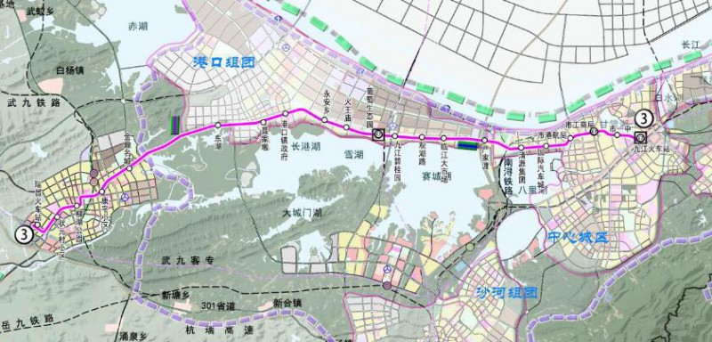 3號(hào)線: 起點(diǎn)為九江火車站,沿廬山南路,長(zhǎng)城路、九瑞大道、省道S304、銅城大道、赤烏大道、人民南路、瑞南線至瑞昌南火車站。線路全長(zhǎng)約39.46公里,共設(shè)站21座。