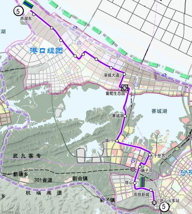 5號(hào)線:起點(diǎn)為通江西路赤湖東站,經(jīng)通江東路、通江大道、賽城湖大道、環(huán)湖路、環(huán)湖南路、雙瑞路、規(guī)劃經(jīng)一路、至終點(diǎn)廬山高鐵站,線路全長(zhǎng)約35.2公里,共設(shè)站16座。