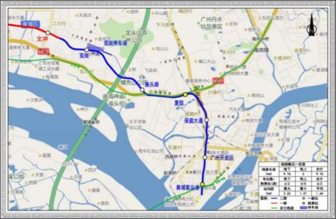 廣州市地鐵5號線東延段(文沖~黃埔客運港),西起已開通運營5號線一期工程的文沖站,東至黃埔客運港站,途徑雙崗、夏園、廣州開發(fā)區(qū)、終點為黃埔客運港。線路全長9.76公里,全部采用地下敷設方式,共設車站6座(不含文沖),其中換乘站2座,設停車場一處,為雙崗停車場,并對一期的魚珠車輛段大架修進行擴容改造。東延段工程作為五號線的一部分將與既有魚珠車輛段內一期工程控制中心合并調整至鎮(zhèn)龍區(qū)域控制中心;設主變電站1座(為墩美主變電所,已與十三號線一期工程同期建設,預留為五號線東延段供電條件,已獲環(huán)評批復)。5號線東延段選擇與既有線相同的系統(tǒng)制式,即最高時速90公里的6輛編組L型車。