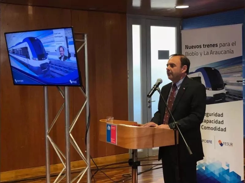 智利交通部副部長Jose Luis Dominguez,EFE總裁Pedro PabloErrazuirz,南方鐵路的董事會主席Victor Lobos, 以及區(qū)域和社會當局共同出席了發(fā)布會。