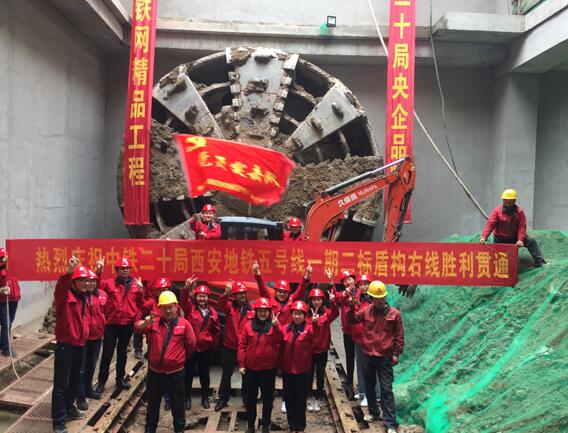 2018年3月19日15時,伴隨著“長安六號”盾構(gòu)機刀盤緩慢破土而出,由中鐵二十局承建的西安地鐵五號線一期和平村站至阿房宮站盾構(gòu)區(qū)間右線貫通。至此,和平村至阿房宮區(qū)間雙線貫通,這是五號線第二個雙線貫通的區(qū)間。