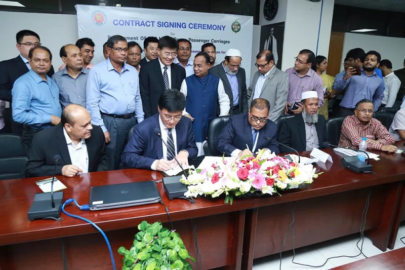 當?shù)貢r間11月4日下午1時30分中車四方車輛有限公司與孟加拉鐵道部簽署了200輛米軌客車合同。