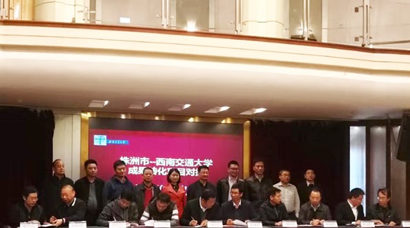 近日,株洲市科技局聯(lián)合市委人才辦組織20余家企業(yè)赴西南交通大學(xué)開展科技創(chuàng)新人才與成果轉(zhuǎn)化對接交流,中車株機(jī)公司、中車株洲所、608所科技開發(fā)公司、株洲九方制動、株洲旭陽機(jī)電等5家企業(yè)分別與西南交大機(jī)械工程學(xué)院、電氣學(xué)院簽訂合作協(xié)議。