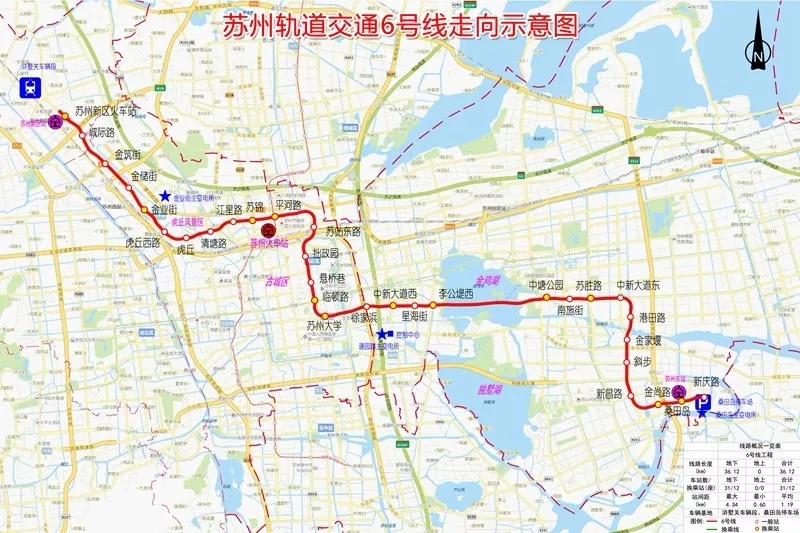 6號線從蘇州西北部穿越古城區(qū),一直到達東南部,途經(jīng)高新區(qū)、姑蘇區(qū)、工業(yè)園區(qū),串聯(lián)了滬寧城際蘇州新區(qū)站、金閶新城、虎丘、平江新城、古城、蘇州大學(xué)、蘇州CBD、金雞湖、園區(qū)體育中心、通蘇嘉城際蘇州東站等重要功能中心和樞紐地區(qū)。
