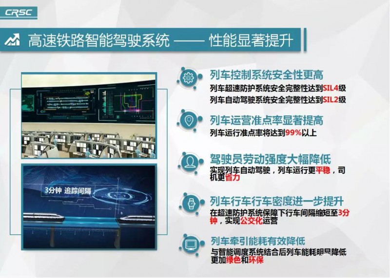 時(shí)速300~350公里高鐵列車自動(dòng)駕駛技術(shù)在世界上尚屬空白,研究高速鐵路列車自動(dòng)駕駛(ATO)技術(shù)既是我國高速鐵路技術(shù)發(fā)展所需,也是確立我國高速鐵路整體技術(shù)國際地位的需要。高速鐵路自動(dòng)駕駛系統(tǒng)構(gòu)建了具有完全自主知識(shí)產(chǎn)權(quán)、符合互聯(lián)互通標(biāo)準(zhǔn)的高速鐵路自動(dòng)駕駛技術(shù)體系,提升了高速鐵路列車運(yùn)行控制系統(tǒng)功能。通過運(yùn)用智能化控制算法和控車策略,實(shí)現(xiàn)了對(duì)時(shí)速350公里高鐵列車的精準(zhǔn)控制,全面提升了控車舒適度、停車精準(zhǔn)度、節(jié)能降耗等性能指標(biāo),對(duì)減輕司機(jī)勞動(dòng)強(qiáng)度、提高高鐵運(yùn)營效率、改善旅客乘車體驗(yàn)具有重要意義。
