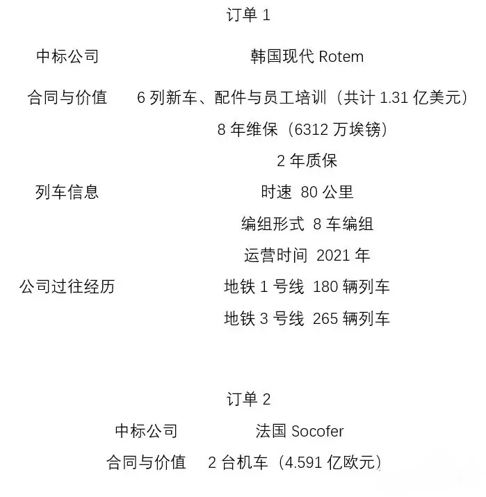 1.2018年3月,委員會(huì)已發(fā)布地鐵2號(hào)線列車采購(gòu)招標(biāo)。