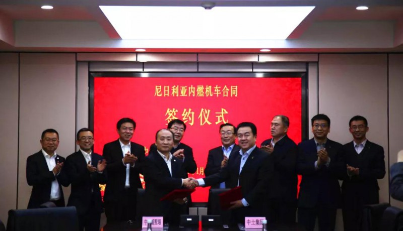 1月25日下午,北京,中車戚墅堰公司與土木工程集團有限公司(簡稱中土集團)正式簽署出口尼日利亞阿卡、拉伊鐵路21臺內燃機車合同。