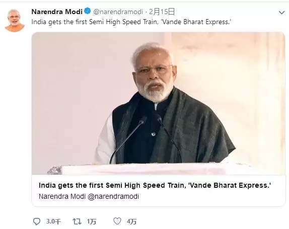 據了解:印度總理納倫德拉·莫迪2月15日出席印度國產最快列車開通運營儀式。