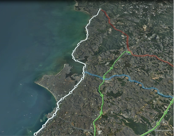 薩爾瓦多云軌線路(白色線條)將與其它軌道交通線路共同打造軌道交通網