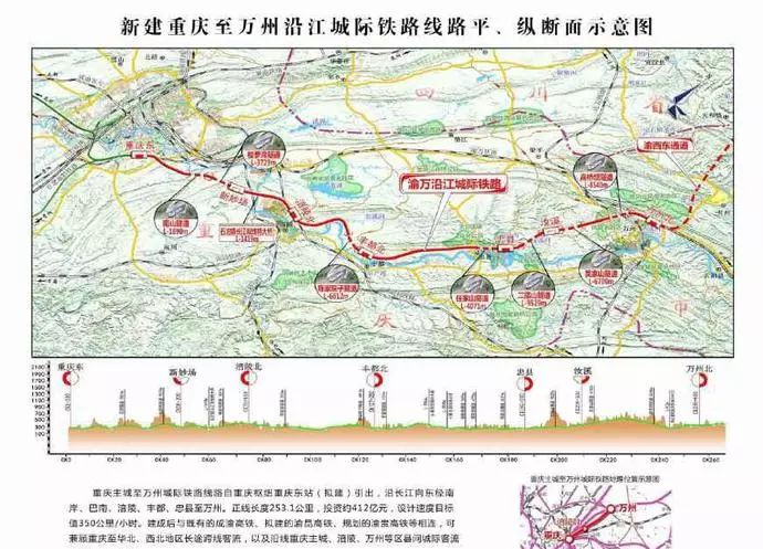 渝萬高鐵,即重慶市至萬州新建的一條設(shè)計時速為350km/h的高速鐵路。根據(jù)國家中長期鐵路網(wǎng)規(guī)劃,渝萬高鐵是沿江高鐵萬州至重慶段的重要組成部分。該項目在2018年7月2日由鐵路總公司下屬單位正式發(fā)布了勘察設(shè)計招標(biāo)工作,根據(jù)安排,計劃在2019年開工建設(shè)。