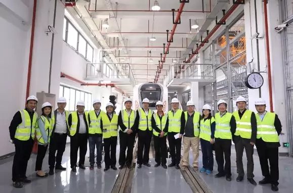 委員一行在車輛段聽取項目介紹,隨后乘車體驗,參觀調(diào)度大廳及設(shè)備房,見證了機(jī)場捷運線在有限的安全防護(hù)距離條件下的精準(zhǔn)進(jìn)站、支持中央級聯(lián)鎖控制、7×24小時不間斷運營、正線無人全自動存車、自動折返、休眠、喚醒、跳躍等功能的實現(xiàn)。