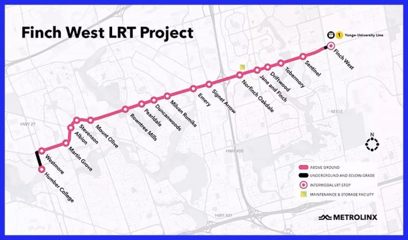 正在建設(shè)中的FinchWest輕軌線長11公里,將在亨伯學(xué)院和芬奇西部之間提供18個站點(diǎn),預(yù)計2023年投入運(yùn)營,MTG將負(fù)責(zé)30年維護(hù)工作。