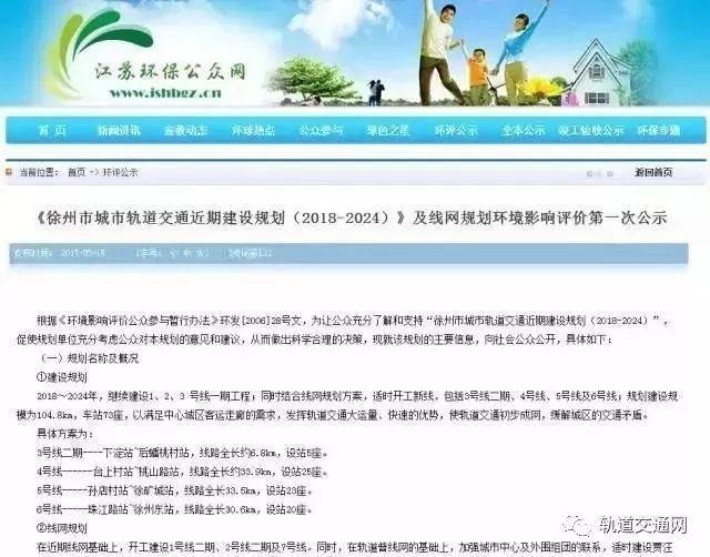 2017年5月,江蘇環(huán)保公眾網(wǎng)發(fā)布了《徐州市城市軌道交通近期建設(shè)規(guī)劃(2018-2024)》第一次公示。隨后,6月,進(jìn)行了第二次公示。其中,涵蓋地鐵3號線二期,4號線、5號線、6號線的建設(shè)規(guī)劃,以及長遠(yuǎn)的線網(wǎng)規(guī)劃。
