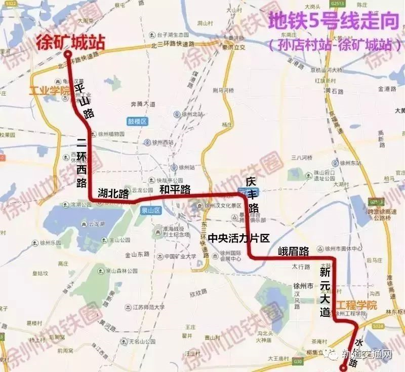 5號線起自104 國道與水壩路路口的孫店村站,向北沿水壩路— —規(guī)劃路——新元大道——峨眉路,到達(dá)中央活力片區(qū)。后沿慶豐路 ——和平路——湖北路——二環(huán)西路——平山路向北敷設(shè),終點(diǎn)位于徐礦城站。