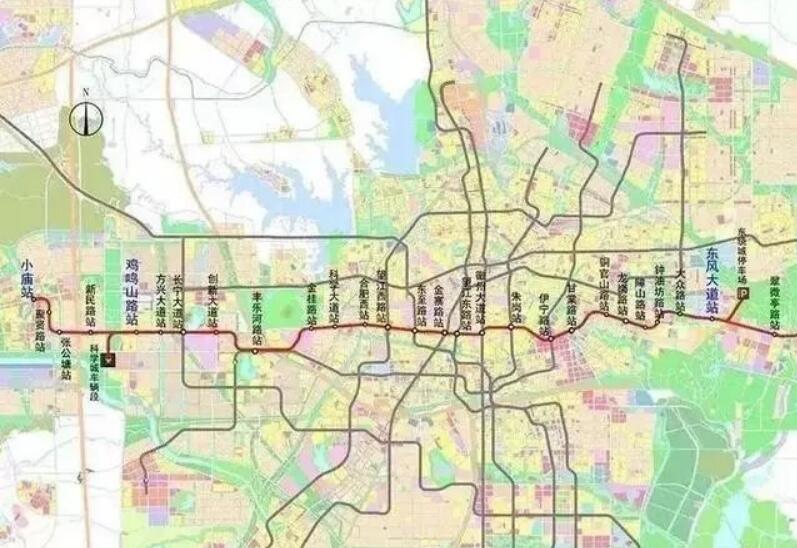 一期工程線路西端起于雞鳴山路,東端止于東風(fēng)大道,途徑望江西路、習(xí)友路、玉蘭大道、望江路、太湖路、堯渡河路、唐大樓路、幸福路、高亮路、鐘油坊路。