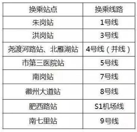 全線設(shè)置換乘站點9個,可以換乘8條地鐵線。