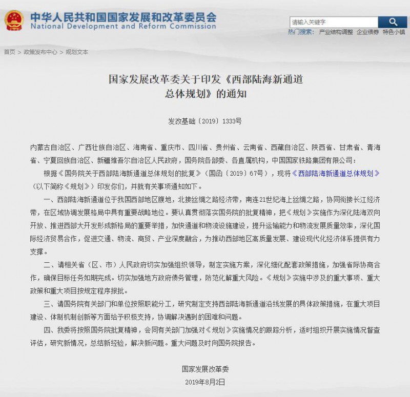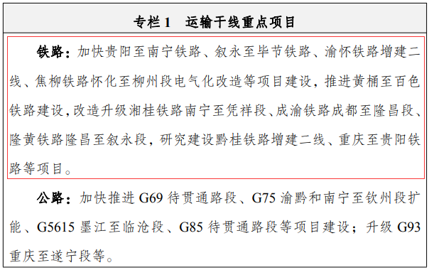 《西部陸海新通道總體規(guī)劃》提出加快推進(jìn)鐵路建設(shè)。打造重慶、成都至北部灣出海口大能力鐵路運(yùn)輸通道,實(shí)施一批干線鐵路擴(kuò)能改造項(xiàng)目,新建局部支線和聯(lián)絡(luò)線,暢通能力緊張“卡脖子”路段,形成東、中、西線合理分工、相互補(bǔ)充的鐵路運(yùn)輸網(wǎng)絡(luò)。中線著力提升通道能力,加快貴陽至南寧等新線建設(shè);東線著力加快既有鐵路改造提升,推進(jìn)渝懷鐵路增建二線等項(xiàng)目建設(shè);西線加強(qiáng)補(bǔ)齊通道短板,建設(shè)黃桶至百色等鐵路項(xiàng)目。研究建設(shè)雙層集裝箱運(yùn)輸通道。