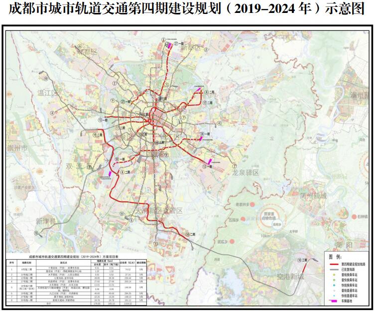 成都市城市軌道交通第四期建設(shè)規(guī)劃(2019-2024年)顯示,2019 至 2024 年,建設(shè) 8 號(hào)線二期、10 號(hào)線三期、13 號(hào)線一期、17 號(hào)線二期、18 號(hào)線三期、19 號(hào)線二期、27 號(hào)線一期、30 號(hào)線一期工程等 8 個(gè)項(xiàng)目,總長(zhǎng) 176.65 公里。項(xiàng)目建成后,成都市將形成總長(zhǎng)約 692 公里的軌道交通網(wǎng)絡(luò)。